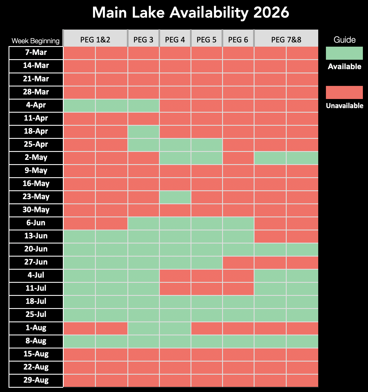 Dates here are based on the start of a fishing week - Arriving Saturday at 2pm and departing the following Saturday at 9:30am.
